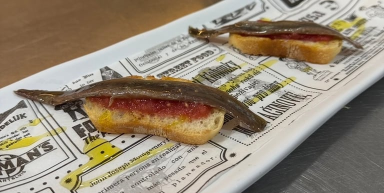 Antes de servirte los bocadillos te van dejando en mesa varios platos con pikaeta, tales como bravas, tomate, champiñones, boquerones, etc.. Los camareros muy atentos y buen servicio.